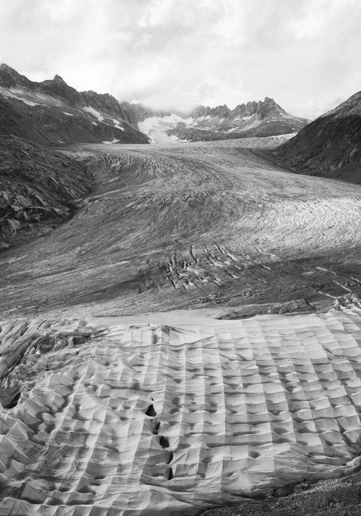 Depuis 2004, afin de freiner ce processus, des toiles géotextiles sont posées sur certaines portions – très limitées – de plusieurs glaciers alpins, en France, en Suisse, en Allemagne, en Autriche et en Italie. Résultat: des transformations parfois spectaculaires du paysage ainsi que des impacts écologiques non négligeables dont témoignent de nombreux photographes internationaux.